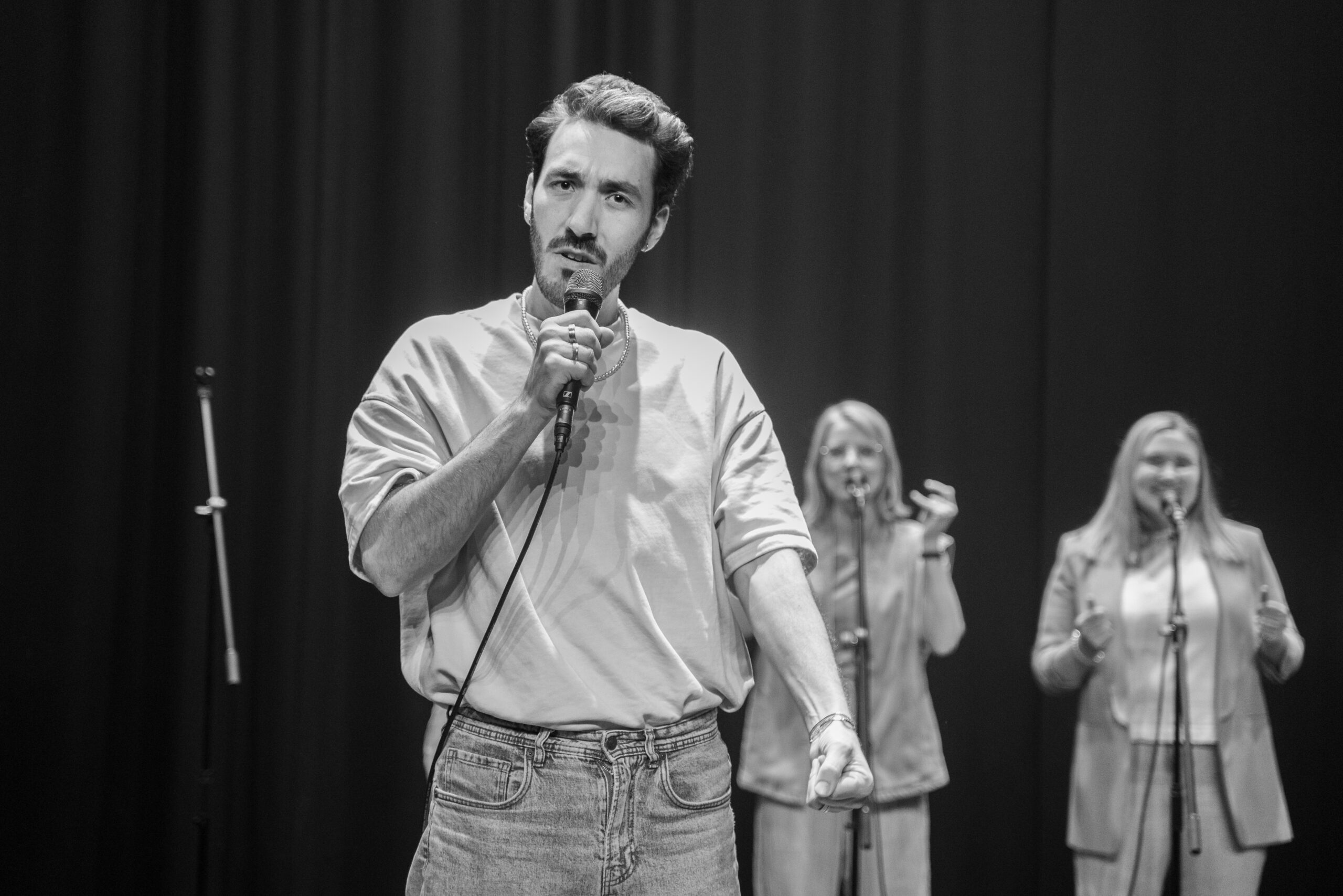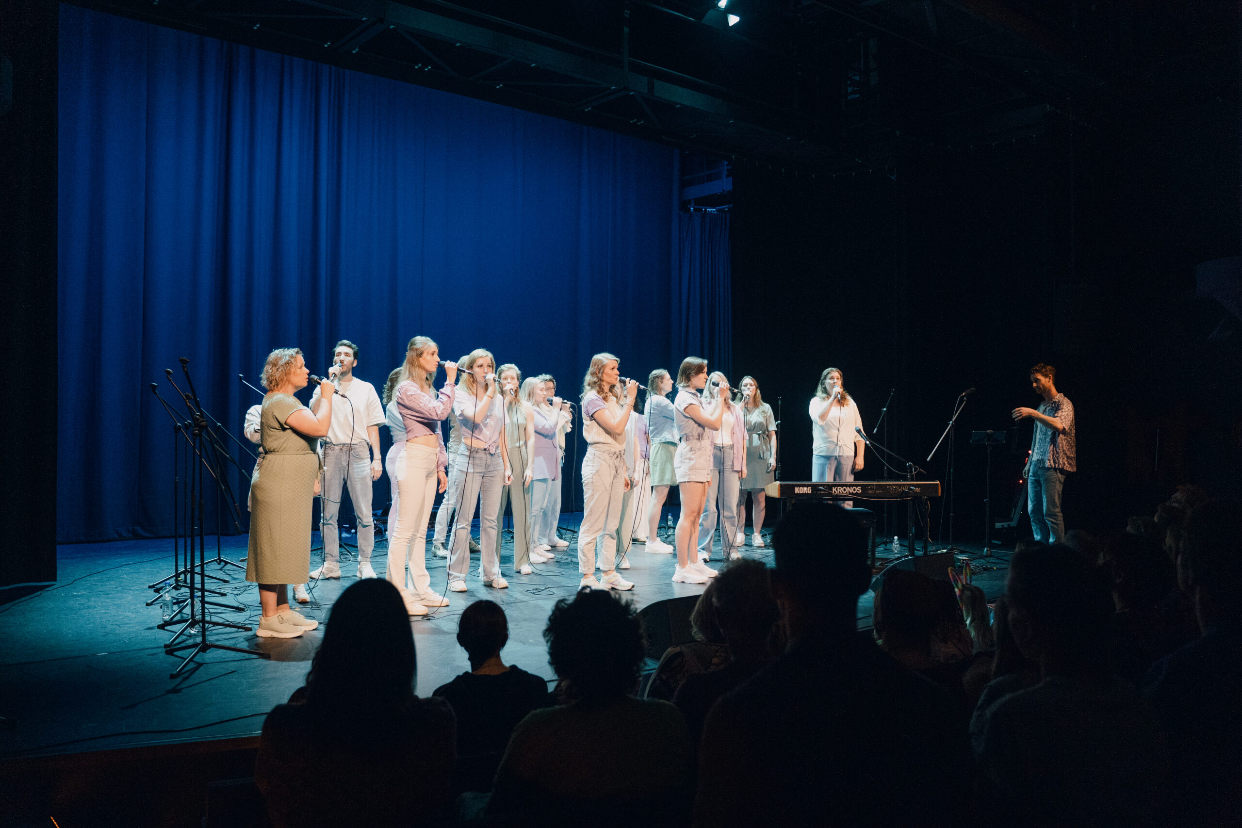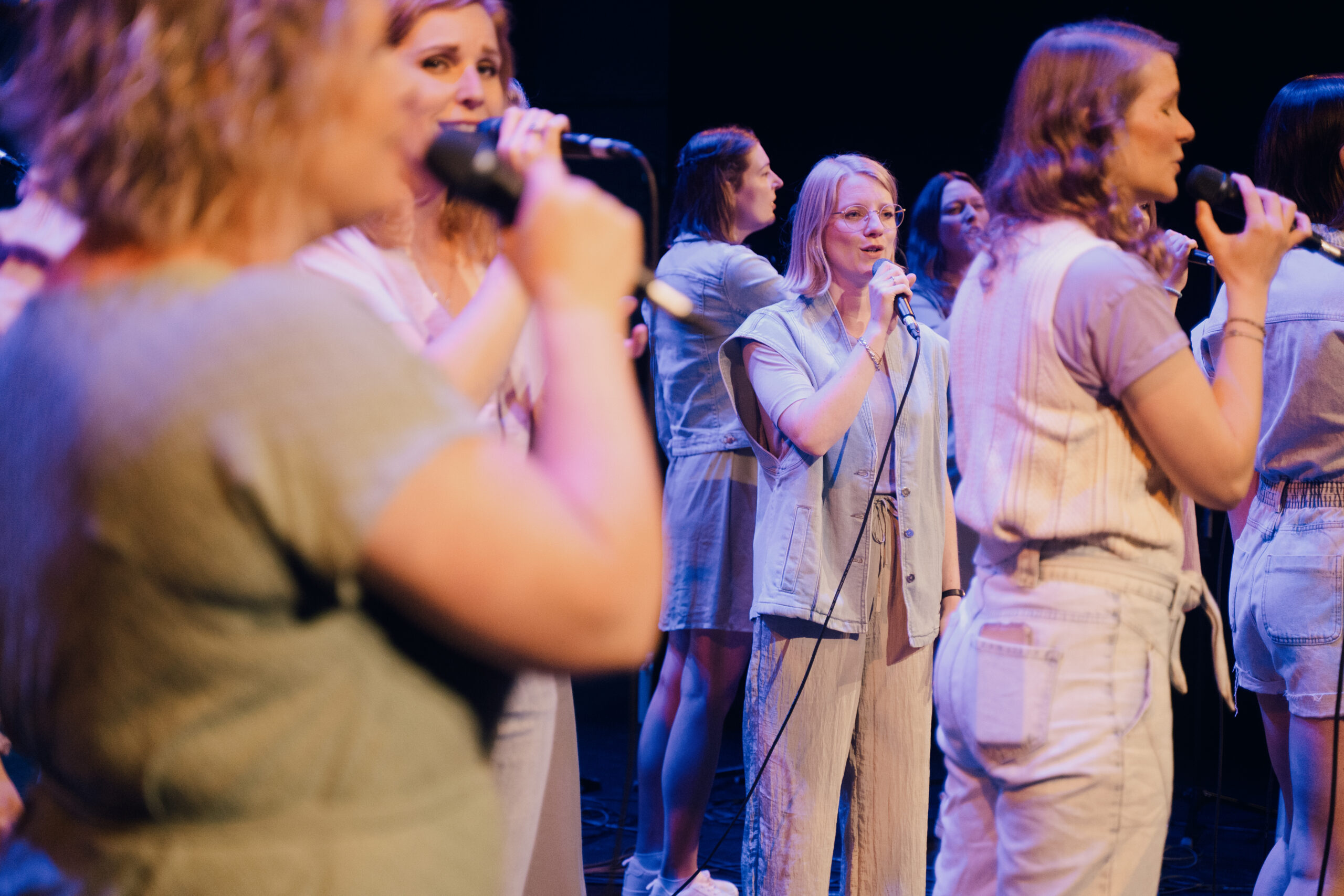 We werken in onze repetities toe naar een eigen avondvullend programma. Deze show voeren we uit in het theater. Hierin laten we als vocal group onze energieke klank horen en zingen we indrukwekkende arrangementen met subtiele koorregie. Ieder met een eigen microfoon voor een krachtige podiumsound.